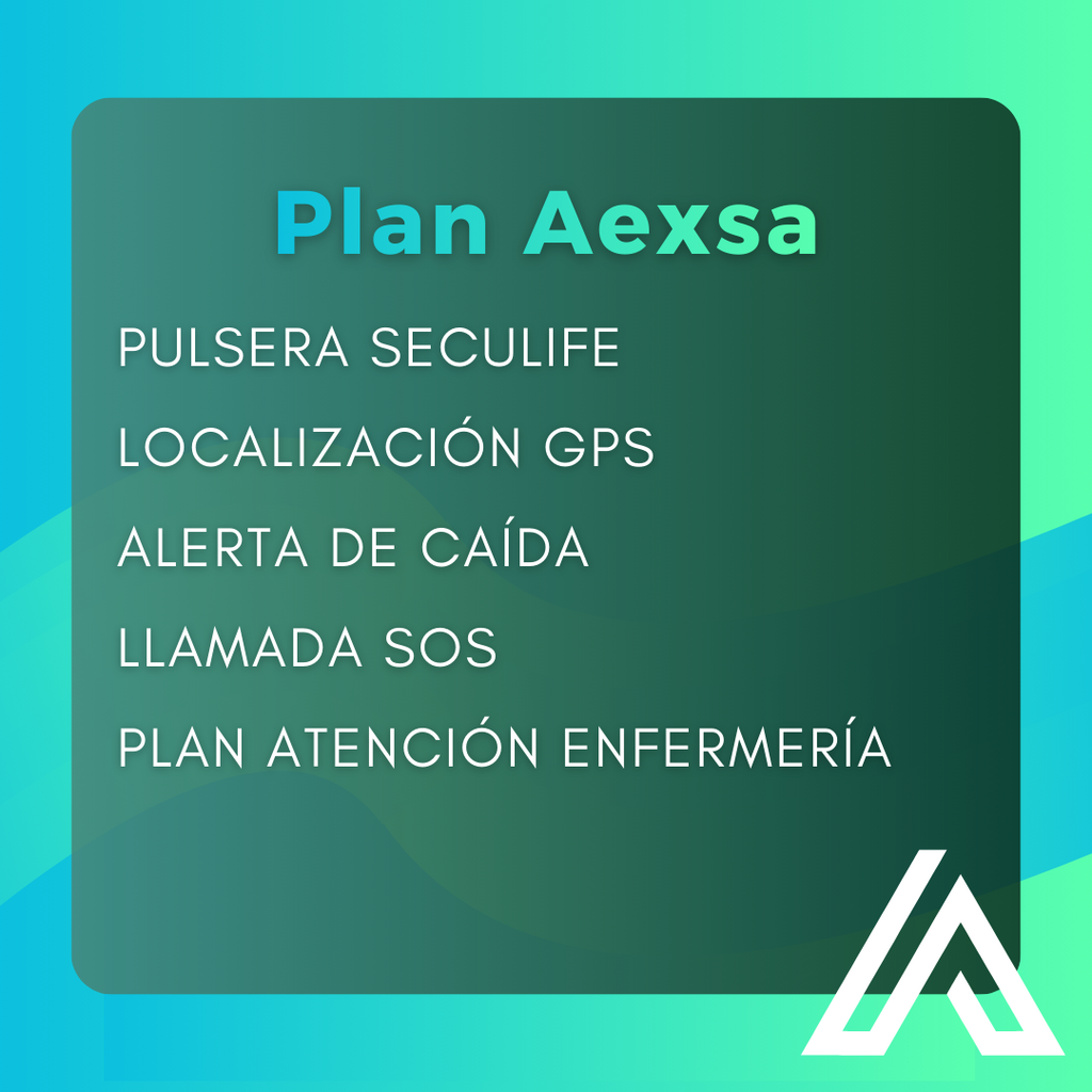 El plan AEXSA ofrece una solución integral de cuidado y seguridad para sus usuarios, combinando tecnología y atención personalizada. Con la pulsera Seculife, los usuarios cuentan con localización GPS para saber su ubicación en todo momento, alerta de caída que notifica inmediatamente ante cualquier accidente, y un botón de llamada SOS para contactar de forma rápida con asistencia en situaciones de emergencia. Además, el plan incluye un servicio de atención de enfermería, asegurando acompañamiento profesional y cuidado continuo, brindando tranquilidad tanto a los usuarios como a sus familiares. Esta combinación de dispositivos y servicios hace que el plan sea un apoyo confiable para la protección y bienestar diario.